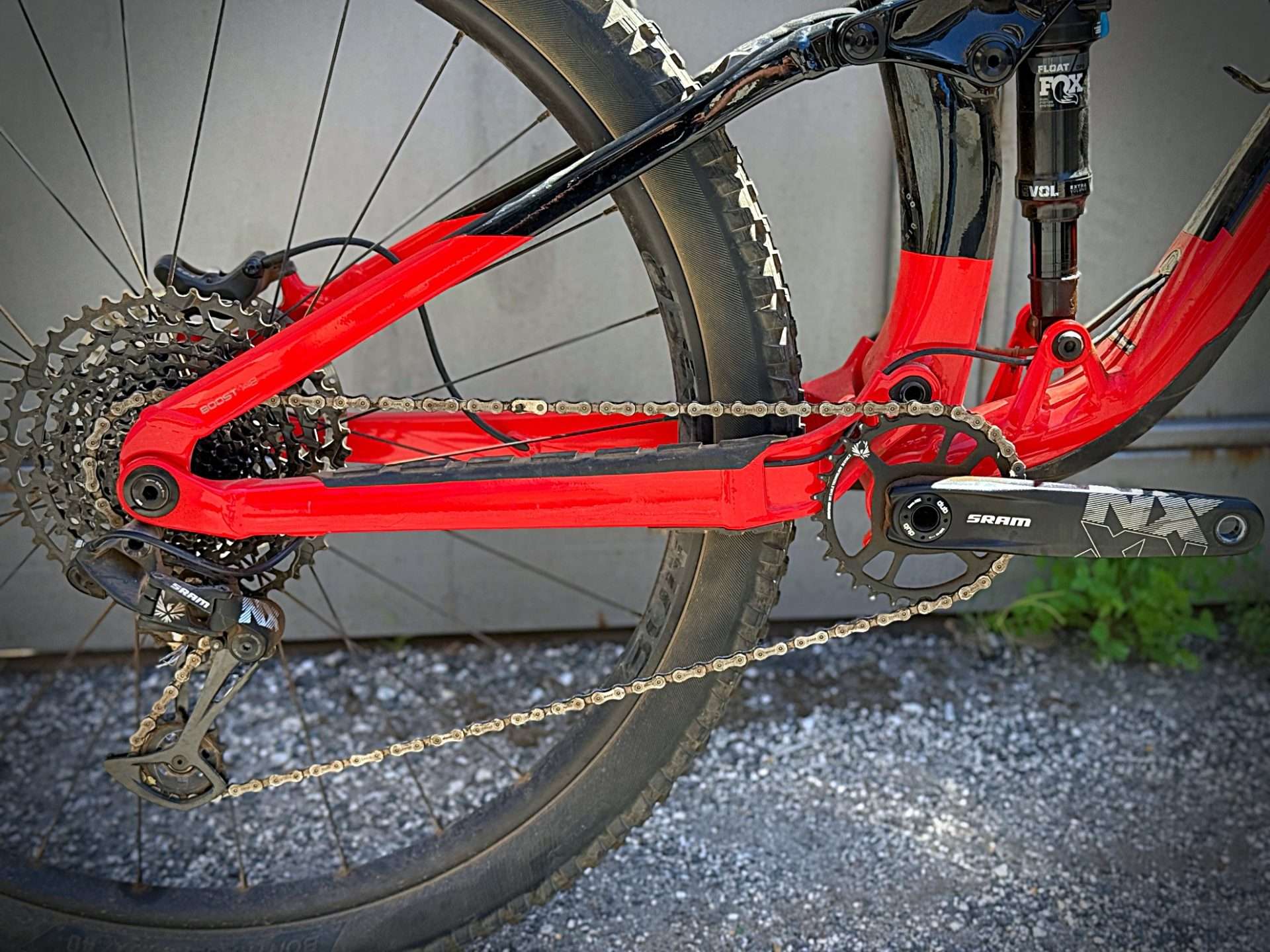 - Ammortizzatore Posteriore: La sospensione posteriore è gestita da un Fox Performance Float EVOL con ammortizzatore a 2 posizioni (Open/Firm) e regolazione del ritorno. Funziona in armonia con il sistema ABP per un controllo costante.